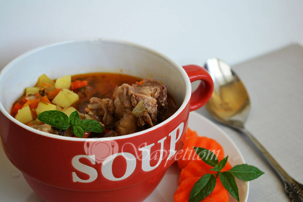 Свиные ребрышки режем на порционные кусочки и ставим варить 40 минут. Не забываем снять накипь с бульона. Морковь мелко режем и обжариваем 5 минут на растительном масле. Затем добавляем лук и болгарский перец. И жарим еще 10 минут. Добавляем очищенные помидоры. И тушим 10 минут. Добавляем измельченный чеснок и мелко нарезанную зелень. Как готов бульон добавляем к ребрышкам картошку нарезанную на мелкий кубик и варим до готовности. Солим бульон и выкладываем пережарку. Даем покипеть еще пару минут и шулюм готов. Перед подачей к столу, шулюм должен настояться еще минут 20. Приятного аппетита. На моем сайте sappetitom.ru много интересны, простых, а самое глав