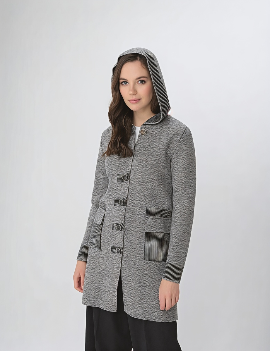 Материал — это половина успеха. Ищите шерсть с добавлением кашемира или натуральные смесовые ткани. Они не только красиво выглядят, но и хорошо держат форму.