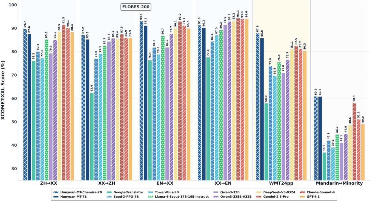 😱🤯 КИТАЙЦЫ ВЫНЕСЛИ МОЗГ ВСЕМУ МАШИННОМУ ПЕРЕВОДУ?! 🇨🇳💥 Tencent выпустила две бомбы под названиями Hunyuan-MT-7B и Hunyuan-MT-Chimera-7B — это настоящие языковые боги! 🤖🔥 Эти нейронки знают 33 языка и с легкостью уделывают ВСЕХ конкурентов на бенчмарках — даже GPT-4.1, Claude Sonnet 4 и DeepSeek V3 остались позади! 😮💥 Представляете, эти мощнейшие модели — В ОТКРЫТОМ ДОСТУПЕ! 🆓🎉 То есть каждый желающий может их использовать, интегрировать в свои проекты и начать делать крутой штуки! 🛠✨ Не нужно платить, не нужно стоять в очереди — просто бери и пользуйся! 🤑👌 Но это еще не всё! 🤯💥 Эти модели прошли через 31 бенчмарк и разнесли 30 из них! 📊💣 Это как если бы вы пришли на экзамен и решили 30 из 31 задачи правильно, оставив всех остальных в шоке! 🤯🎓 ПОЧЕМУ ЭТО НАСТОЯЩИЙ БУМ?! 🤯💥 Потому что это НЕ просто еще один шаг вперёд — это гигантский скачок в области машинного перевода! 🚀🌍 Tencent не просто создала модели, они создали языковых монстров! 🧠👹 Hunyuan-MT-7B и Huny