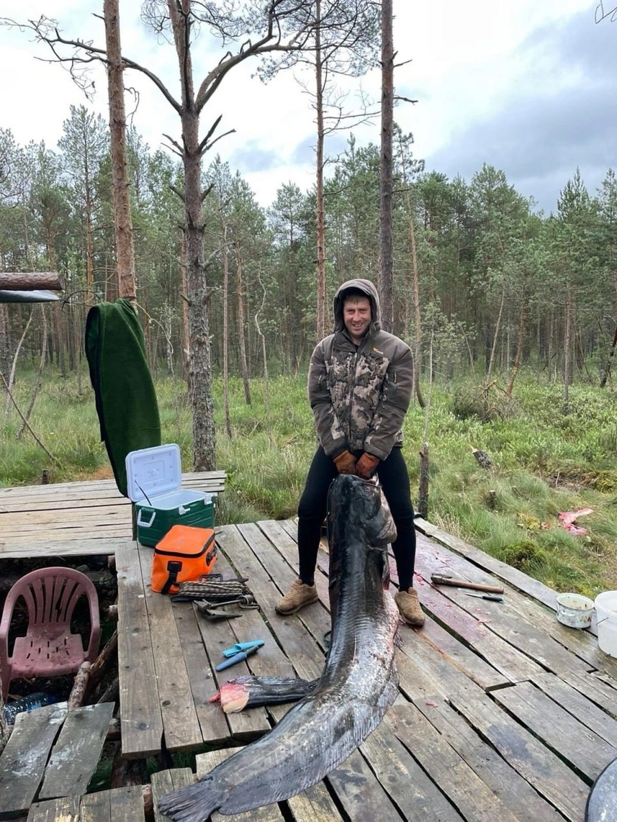 На Двинском озере, расположенном в Куньинском районе, рыбак Дмитрий Налогин поймал огромного сома