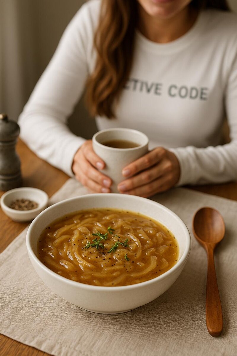 Рецепт выходного дня: луковый суп (и нет, это не мерзко) Если при словах "луковый суп" ты представляешь серую мутную жижу из советской столовки — забудь. Мы говорим про мягкий, насыщенный, ароматный суп с карамелизированным луком, тёплым бульоном и умопомрачительным вкусом. Без сливок, без муки, без глютена — но с эффектом «хочу ещё». Что нужно (на 2–3 порции): - Лук репчатый — 5–6 средних головок - Говяжий или куриный бульон — 1 литр - Оливковое масло или топлёное — 1,5 ст. ложки - Чеснок — 2 зубчика - Тимьян или розмарин — по вкусу - Соль, перец — щепотка - По желанию — сыр (грюйер или пармезан) и безглютеновые сухарики Как готовить: 1. Лук нарежь тонкими полукольцами. 2. На сковороде или в кастрюле с толстым дном разогрей масло. 3. Обжаривай лук на среднем огне 15–20 минут до мягкости и карамельного цвета. Не торопись. 4. Добавь чеснок и травы, обжарь ещё минуту. 5. Залей бульоном, доведи до кипения, убавь огонь и томи ещё 10–15 минут. 6. Попробуй. Сильно. Если хочется — добавь с