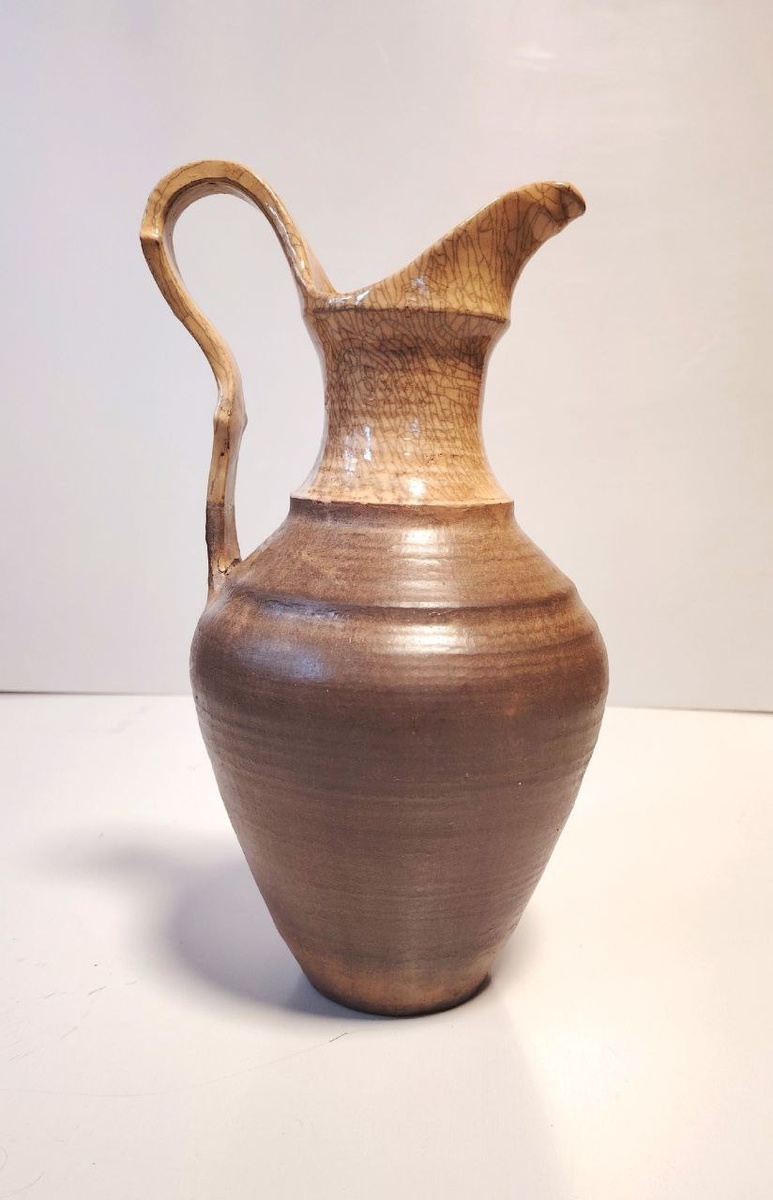 Когда-то давно, в начале занятий керамикой, я использовал для обжига окунание в масло 🫒, а не в молоко 🥛. Получалось очень неплохо — цвет дерева. Правда, только на светлой, тогда Воронцовской глине 🏺. Не знаю, традиционная ли это технология или я сам намудрил 🤔, но изделия покупателям очень нравились 🔥. Потом перешёл на чернение и другие техники. Да и Воронцовская глина пропала 😔. Сегодня, после отпуска, достал свой кувшин из светлой глины Витольд 🏺. Дай думаю попробую масло... И вроде ничего — даже цек-кракле похожий получился ✨. Гончарная студия Будущего YarO