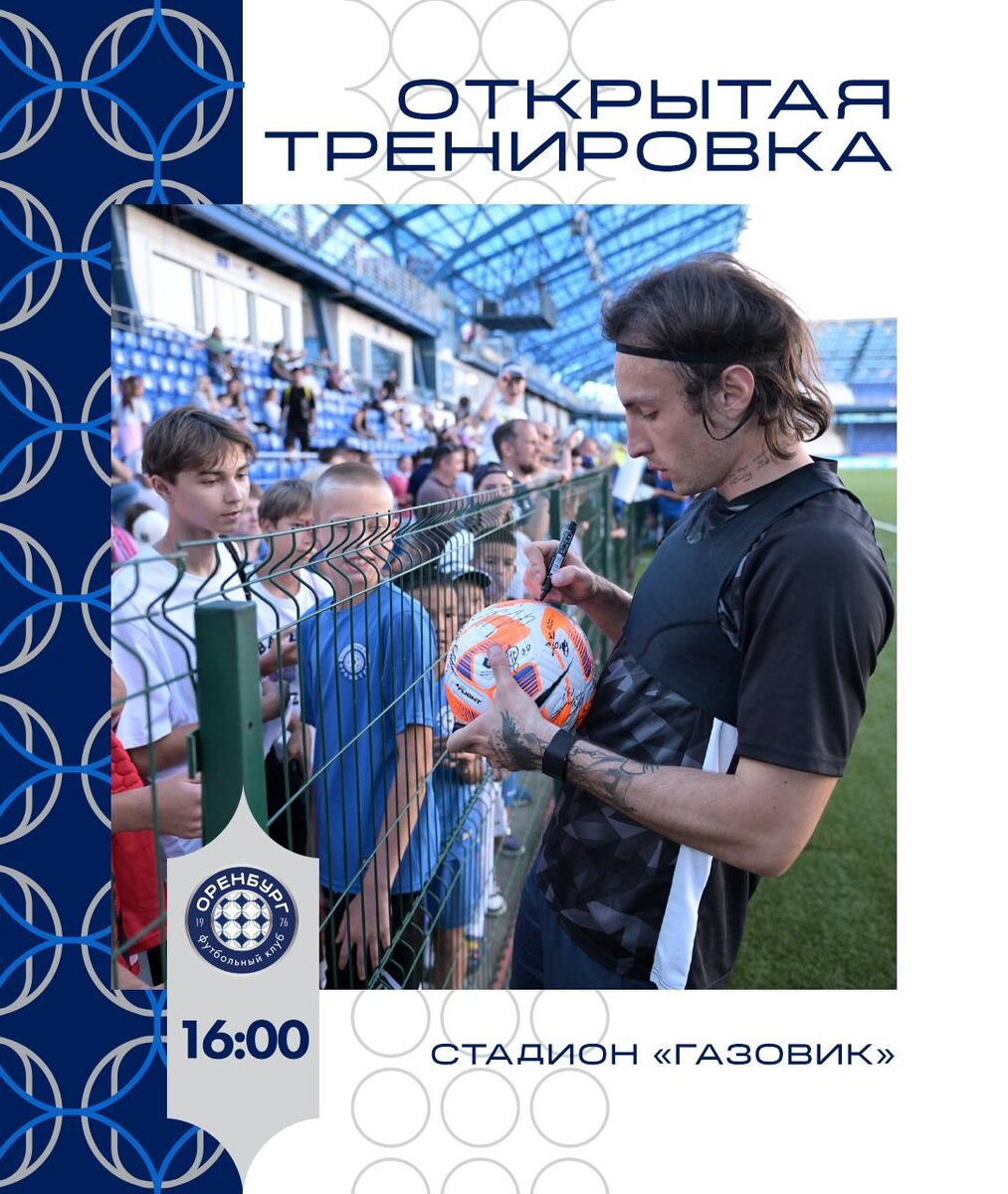 День открытой тренировки ⚽️ Сегодня встречаемся на «Газовике». Активности на стадионе начнутся в 15:00. Команда выйдет на поле в 16:00. Приходи сам и бери друзей. Не забывай про клубные цвета!💙🤍