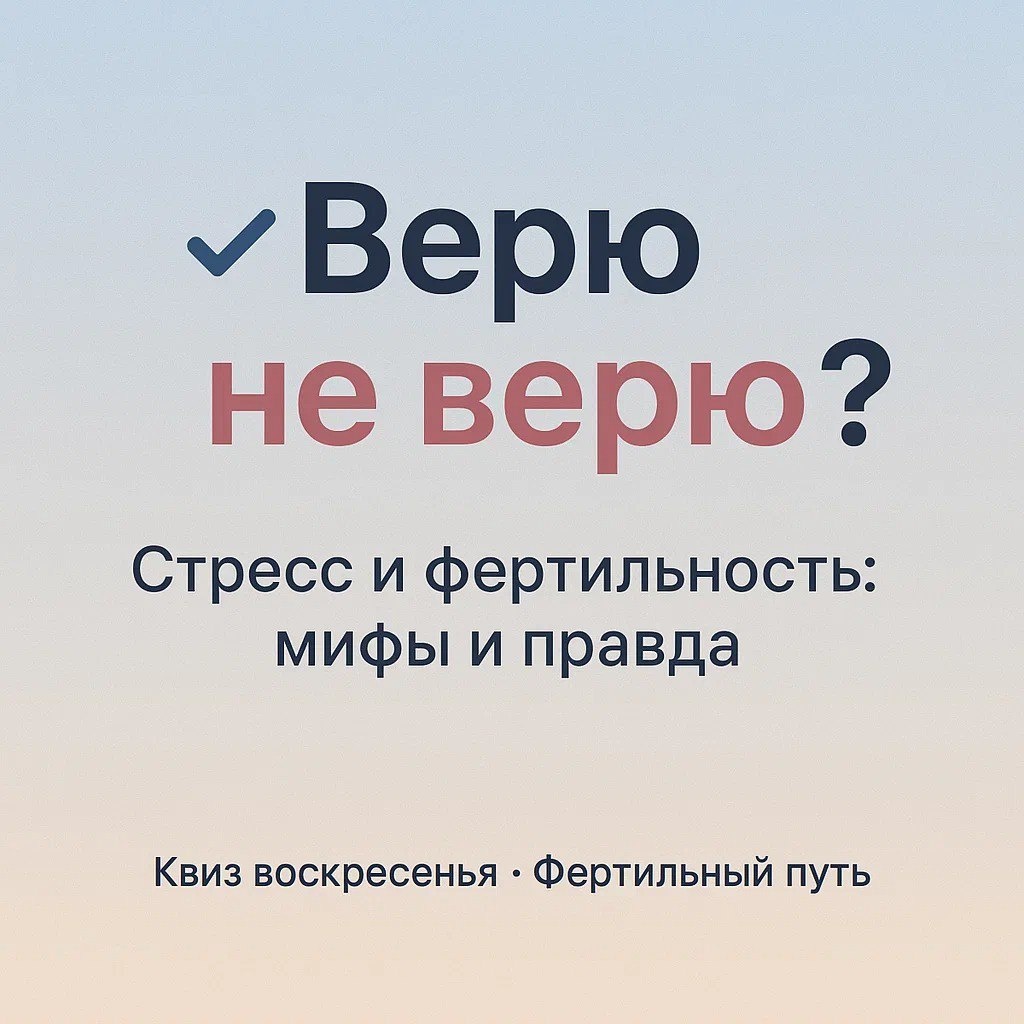 Иногда про стресс и фертильность ходит так много мифов, что разобраться сложно. Давайте поиграем в «Верю / не верю» 👇 Реагируйте ниже: ✅ если верите, ❌ если думаете, что миф. А вечером я расскажу коротко, что на самом деле говорят исследования