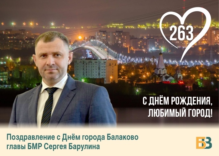 Сегодня исполняется 263 года нашему любимому городу. Это особенный день, когда мы вспоминаем его богатую историю, ценим настоящее и с радостью смотрим в будущее. Достижения наших земляков, которые своим трудом внесли неоценимый вклад в процветание города, – гордость балаковской земли. Каждый день мы пишем новую историю, делая Балаково более благоустроенным, красивым и уютным. Впереди нас ждёт много работы, и я уверен, что нам удастся справиться со всеми задачами, ведь балаковцы – это активные и целеустремленные люди, неравнодушные к судьбе своего города. День города – наш общий праздник, который объединяет жителей в любви к родному городу – месту, где мы живём, работаем и учимся. Желаю городу Балаково дальнейшего развития и процветания, а каждой семье — благополучия, успехов, счастья и радости! С Днём города! Источник: телеграм-канал Сергея Барулина