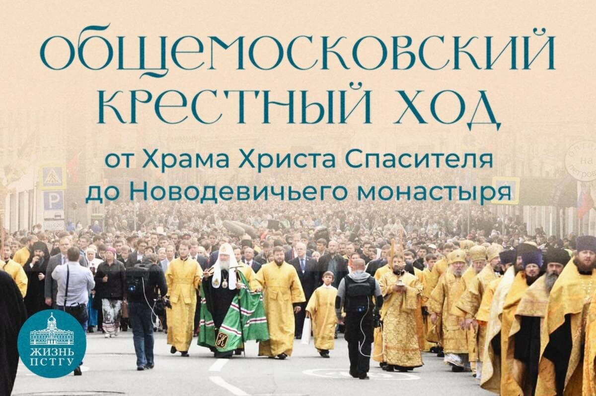 Приглашаем студентов ПСТГУ к участию в общегородском крестном ходе В день празднования Собора Московских святых, в Москве состоится большой общегородской крестный ход. Шествие начнется от кафедрального соборного Храма Христа Спасителя и завершится у стен Новодевичьего ставропигиального женского монастыря. Возглавит крестный ход Святейший Патриарх Московский и всея Руси Кирилл. Вместе с ним в торжестве примут участие викарии Московской епархии, благочинные столичных церковных округов, наместники и настоятельницы монастырей, насельники и клирики московских приходов, члены приходских собраний, а также все желающие разделить радость молитвенного единения. 📅 Воскресенье. 7 сентября ⏱️ 10:00 Сбор участников. 📍Храм Христа Спасителя, Волхонка, д. 15.