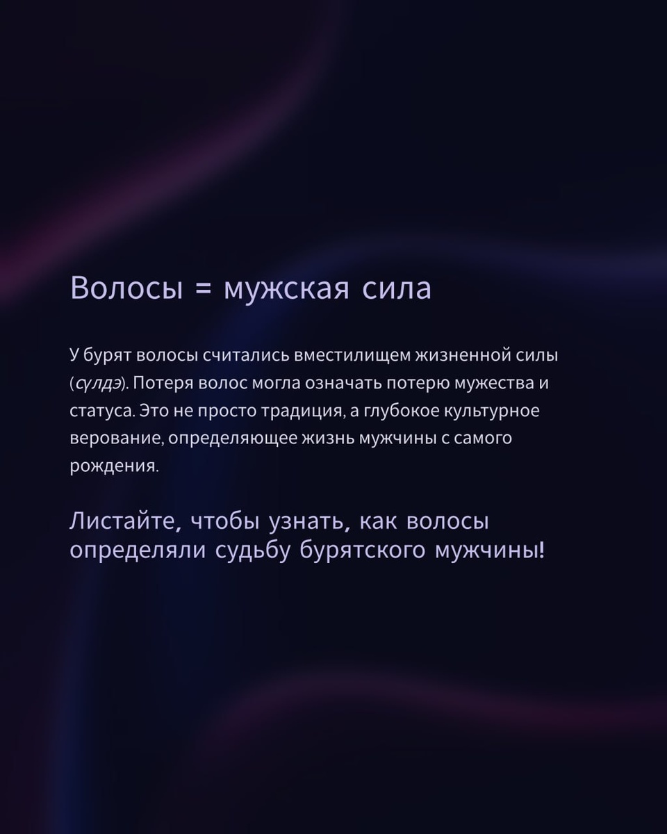 Волосы = мужская сила У бурят волосы считались вместилищем жизненной силы (сүлдэ). Потеря волос могла означать потерю мужества и статуса. Ещё больше интересного контента ждут тебя. 👉 Подписывайся: https://dzen.ru/id/670c7fe545d6d72caa724e37