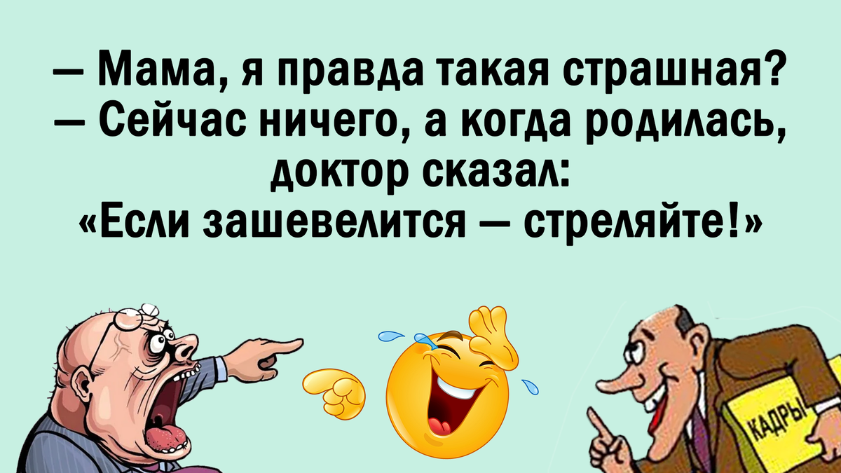 1. Мужик решил свести счёты с жизнью. Стоит на мосту, готовится прыгнуть. Вдруг кто-то трогает его за плечо: — Простите, а котят с собой не прихватите? ⸻ 2. Лягушка ударилась головой о землю и превратилась в красавицу. Ударилась ещё раз — и стала кровавым месивом. Раз на раз не приходится… ⸻ 3. — Мам, я правда такая страшная? — Сейчас уже ничего. А когда ты родилась, врач сказал: «Если зашевелится — стреляйте!» ⸻ 4. Деревня, вечер. На лавке сидят дед с внуком. Пролетает самолёт, выбрасывает парашютиста. Дед, затягиваясь папироской: — Сапёр летит. Внук: — Дед, а почему сапёр? Дед: — А кто ещё на минное поле прыгать будет? ⸻ 5. Американец достаёт из холодильника последнюю бутылку водки и спрашивает русского: — Will you? — Я тебе, гад, вылью! ⸻ 6. Казаки на привале. Выходит атаман: — Ну что, казаки, по коням?! — Снова по коням! Атаман, ну можно хоть раз по бабам? ⸻ 7. На вечеринке молодой итальянец подходит к синьоре Росси: — Простите, вы на следующий танец уже приглашены? — Нет, я свобод