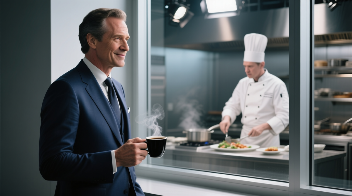 Съёмка началась. Свет! Камера! Он резал, мешал, жарил. Руки летали, как в танце. Зрители аплодировали. А я стоял за кулисами, смотрел. И думал: жизнь – странная штука. Она ушла к нему. А теперь он – в моей команде. Ирония? Или урок?