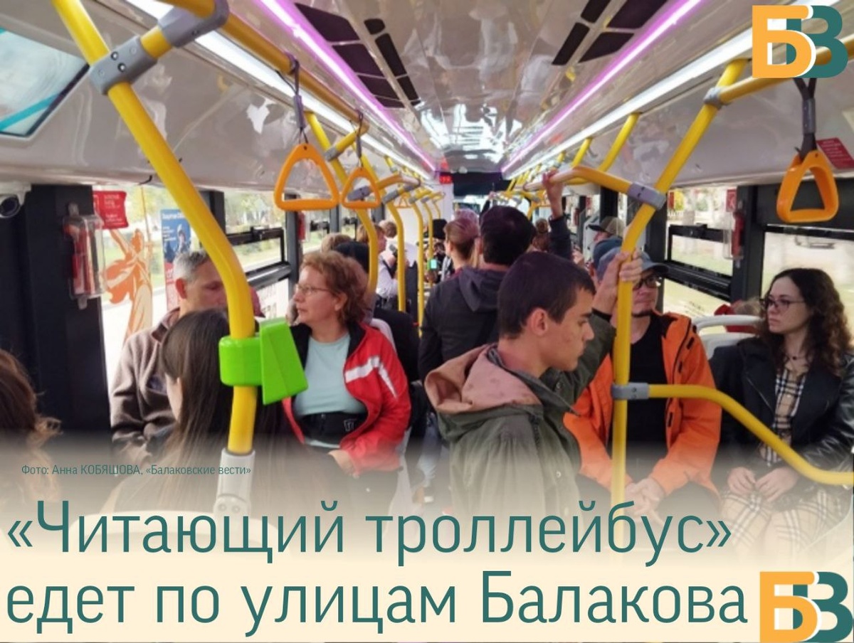 Сотрудники Балаковской городской центральной библиотеки подготовили для балаковцев и гостей города увлекательную экскурсию на троллейбусе «Адмирал», который в 11:15 отправился по маршруту № 12 от остановки «7-й микрорайон». Участникам акции «Читающий троллейбус» рассказывают о знаменитых земляках, истории и архитектурных жемчужинах города.