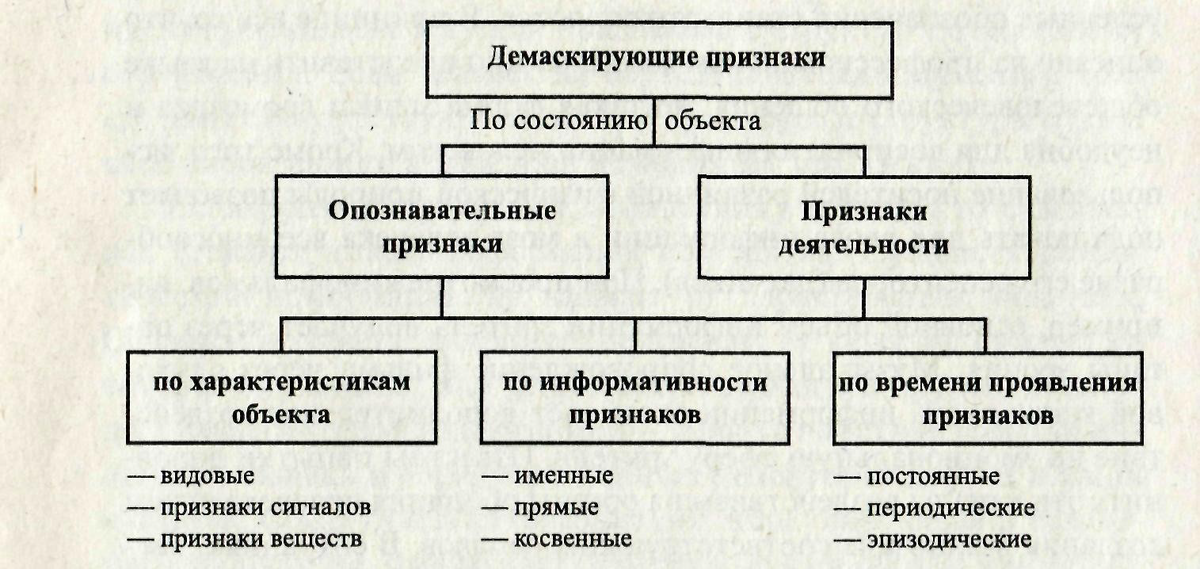 Классификация демаскирующих признаков по различным основаниям