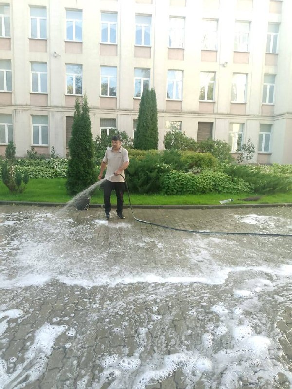 Промывка территорий Сегодня, 6 сентября, сотрудниками подрядной организации по комплексной уборке прилегающих территорий образовательной организации была произведена промывка моющими средствами и водой всех асфальтобетонных и плиточных покрытий и тротуаров. Уборка была проведена по адресам: ул. Михалковская, 3; ул. Матроса Железняка, 32; ул. Генерала Рычагова, 7А; ул. Большая Академическая, 55А; ул. Большая Академическая, 47А. #ДОНМ #ШколыКолледжиМосквы #Школа185 #САО