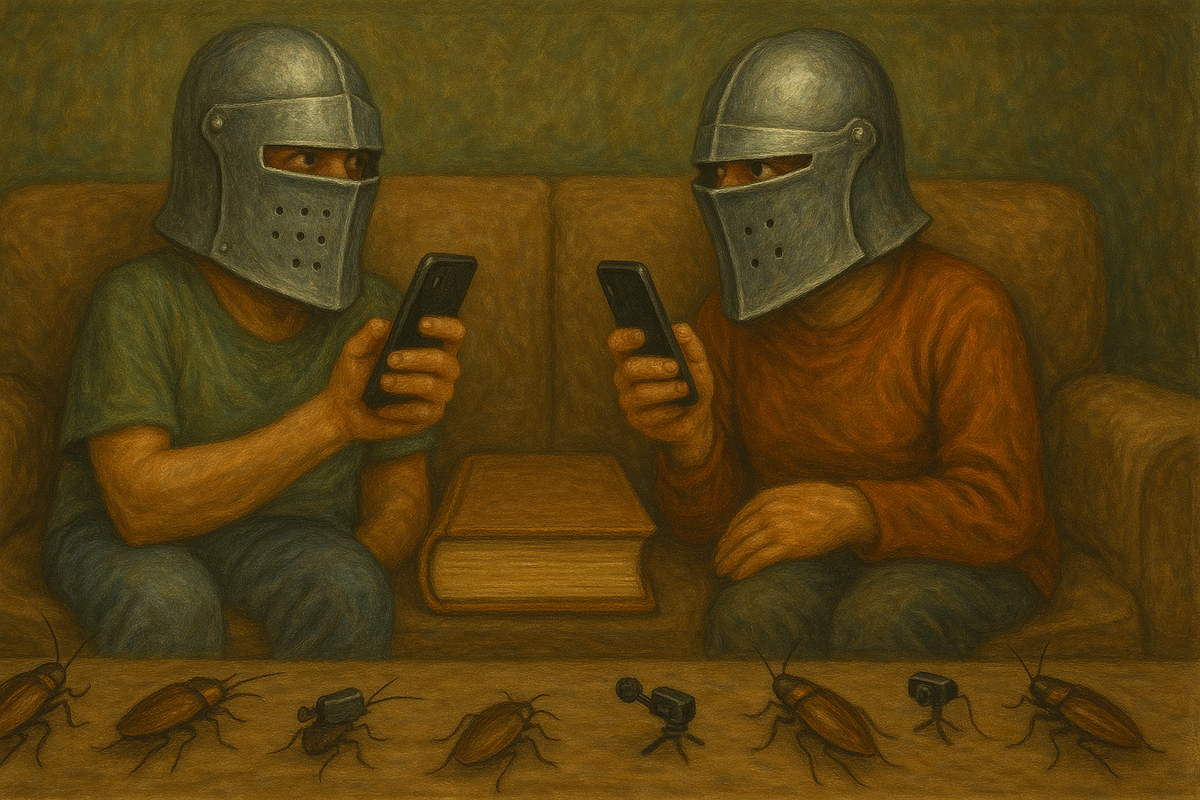 Но потом это напряжение перекочевало в длинные и муторные разговоры на кухне. Всё чаще и чаще один из них стоял у плиты с лицом, выражающим неуверенность во всём, начиная от поджарки котлет и заканчивая смыслами этого всего бытия. Второй же в это время выдумывал хитроумные планы по спасению человечества (или хотя бы себя) от очередной попытки контроля. Постель, которая раньше казалась местом встречи двух вулканов, теперь становилась ареной для интеллектуальных схваток. Сначала — подушки в воздух, потом — упрёки в пол, потом — перемирие на диване.