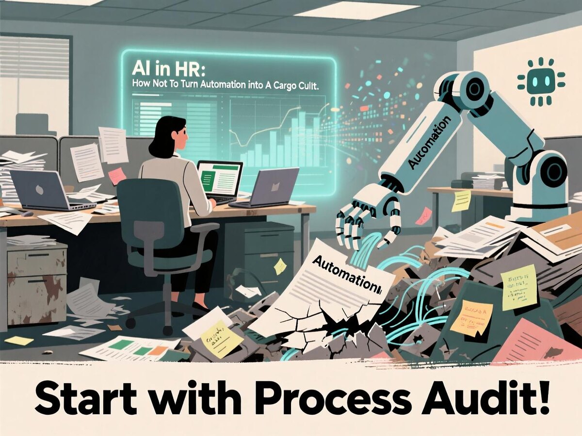 В ленте маячат рассказы про "внедрили чат-бота, теперь у нас все автоматизировано". Как будто купили волшебную палочку. Между тем исследования показывают - каждая пятая российская компания до сих пор ведет HR вручную. И это не только малый бизнес. В списке "ручников" полно организаций с 500+ сотрудниками (https://www.it-world.ru/cionews/mama6hm0iysk8sok0kckogoc8scsgsg.html). Зато 53% компаний не могут оценить эффективность уже внедренной автоматизации. Классическая картина - купили систему за миллионы, а обрабатывает ли она резюме лучше живого рекрутера, никто не знает. Потому что метрик не завели. Потому что "и так все работает". Потому что проще сослаться на "42% компаний считают автоматизацию эффективной" и успокоиться. Настоящая проблема не в ИИ-технологиях, а в отсутствии системного мышления. ИИ работает только с качественными данными. Но в большинстве компаний HR-данные разбросаны по Excel-табличкам, 1С и памяти кадровиков. Так что обучение проводят на мусорных данных. Правильный