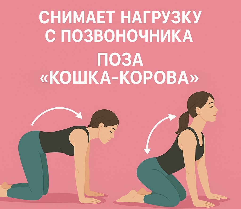 «Кошка-корова» — это упражнение, которое я теперь советую всем подругам. Оно занимает пару минут, но даёт ощущение лёгкости в спине и освобождает позвоночник.