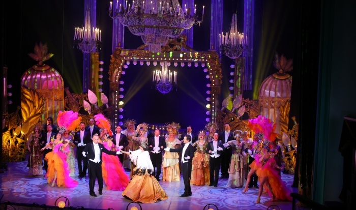 Главные герои этого действия – Художник, Композитор и Поэт – не могут окончательно решить, что же все-таки лучше, оперетта или мюзикл. В этом мини-спектакле сочетались искрометные танцы, зажигательные классические музыкальные номера, звучный вокал и блестящая во всех смыслах сценография. Сцена сверкала и переливалась от «моря огней».
