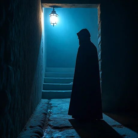 На пороге, залитый лунным светом, стояла фигура. Высокая – слишком высокая. И неестественно вытянутая, словно тень от фонаря, брошенная на стену кривым зеркалом. Пропорции были... чужими. Длинные конечности, слишком узкие плечи, голова, казалось, сидела на невероятно тонкой шее. Закутана в темный, скрывающий очертания плащ с глубоким капюшоном.