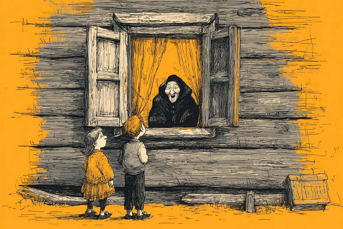 Жили-были в одной деревне брат с сестрой Петя и Марина. Однажды, пошли они в лес за ягодами и заблудились. Дети долго плутали по лесу пока не оказались прямо у самой избушки на курьих ножках. Избушка, как будто была жива, стояла в глухом лесу, и окна её сверкающими глазами смотрели на детей. Внутри дома сидела сама Баба Яга. Она была злая, как всегда, и уже давно не любила никого. Увидев детей из окошка избушки, она хищно улыбнулась. — Эх, вы, бедные дети, прямо в мои лапы попались! Я вас в плен возьму и вы будете мне век служить! — громко прокричала она. Баба Яга щелкнула пальцами и Петя с Мариной тут же оказались в ее избушке. Они сильно испугались, прижавшись друг к другу. А избушка, стоя на своих ногах, тихо вздохнула. Она устала быть слугой злой колдуньи, которая всегда только обижала её и использовала в своих злодейских целях. Её деревянные стены были полны старых обид, а соломенная крыша мечтала о другом — о покое и спокойной жизни. Избушка решила, что пришло время для переме