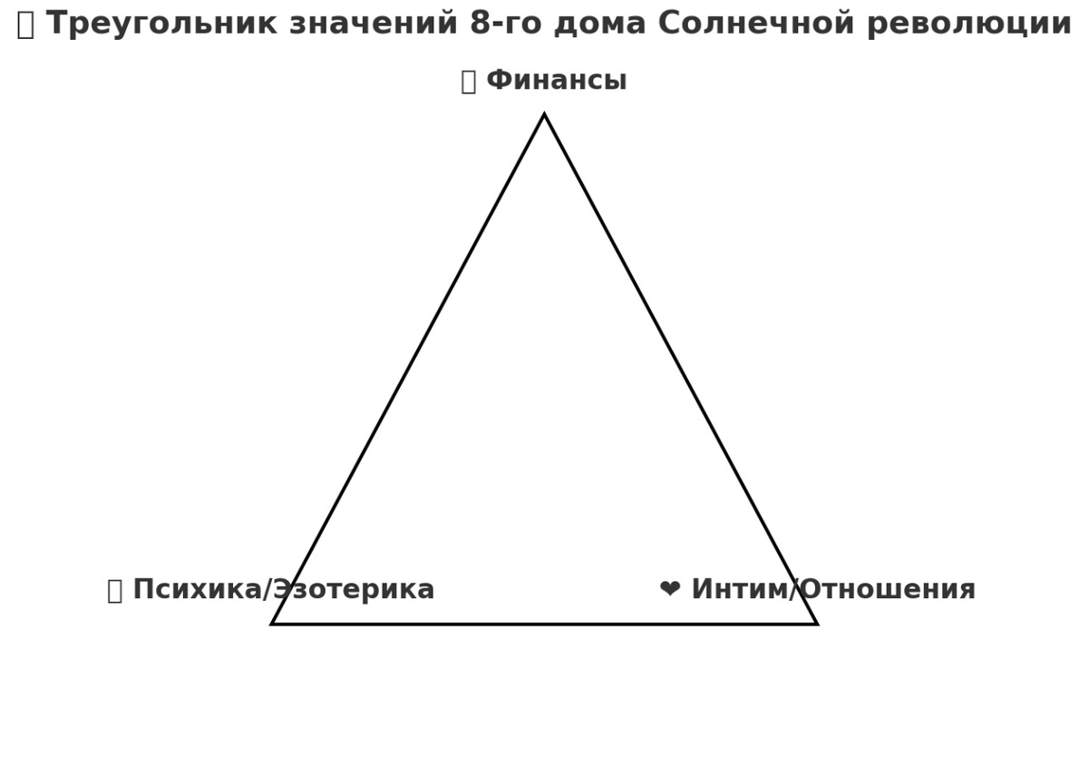 🔑 Смысл в том, что 8-й дом в Соляре — это не только про потери, но и про крупные перемены в финансовых и энергетических потоках. Он усиливает опыт, связанный с чужими ресурсами: