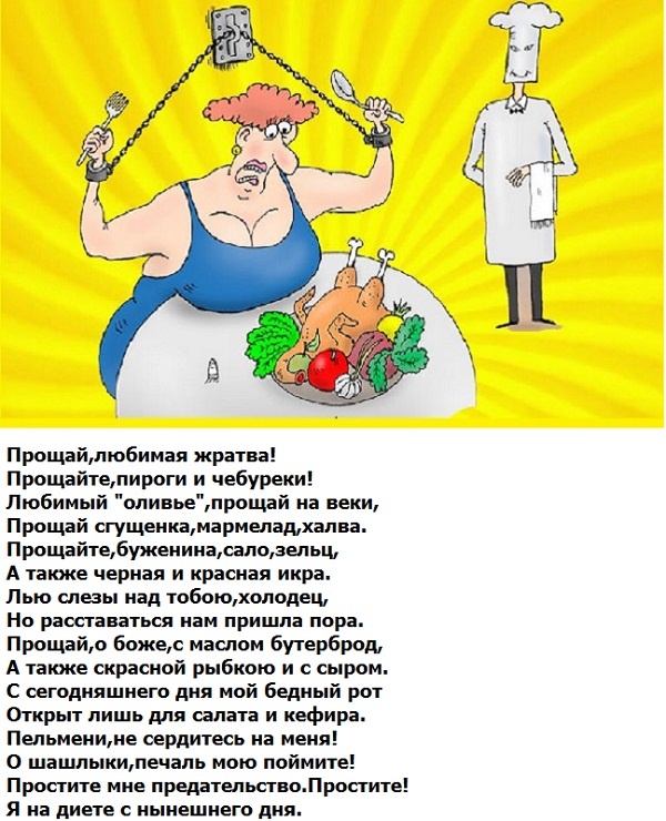 Вот интересно, люди, которые задумали этот праздник, неужели забыли, что каждый праздник для нашего народа -это прежде всего застолье. И какое застолье! Вспомните каждая, что вы ставите на праздничный стол? Мы и в будни-то иной раз так ужинаем, как раньше и в праздник не имел возможности не каждый. Хотите признаюсь? Я не знала, что красная рыба – деликатес. Я вообще о ней не знала и не пробовала. И это я, живущая в рыбном крае. Я выросла на селедке и треске. Ну, и чем я вас угощать при условии, что день сегодня для тех, кто блюдет себя и борется с лишним весом. А? Да и вообще, ну что мы сегодня можем сделать? А ничего. Расслабляйтесь, худеющие, читмил себе устройте, штоли? Но прежде предлагаю: а давайте посмеемся. Над нашим общим врагом - лишним весом. Ну и над собой чуток похихикаем. Тоже не помешает. Но для начала предлагаю спеть наш гимн: Ну а теперь смотрим и наслаждаемся. И все-таки, вес, вызываю тебя на дуэль! Давай поборемся! А то, что было до того, не считается. Подумаешь не