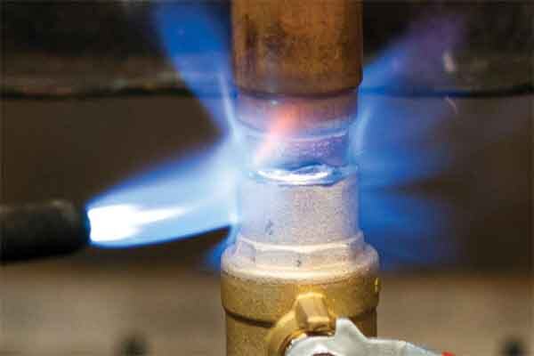 Этим действием достигаются две важные вещи. Очевидно, что медная трубка обладает высокой теплопроводностью. Поэтому нагревание трубной поверхности непосредственно снаружи сустава позволяет легко проводить теплоту вдоль поверхности трубы внутрь сустава. Так повышается температура медной трубки от фронта до основания фитинга.