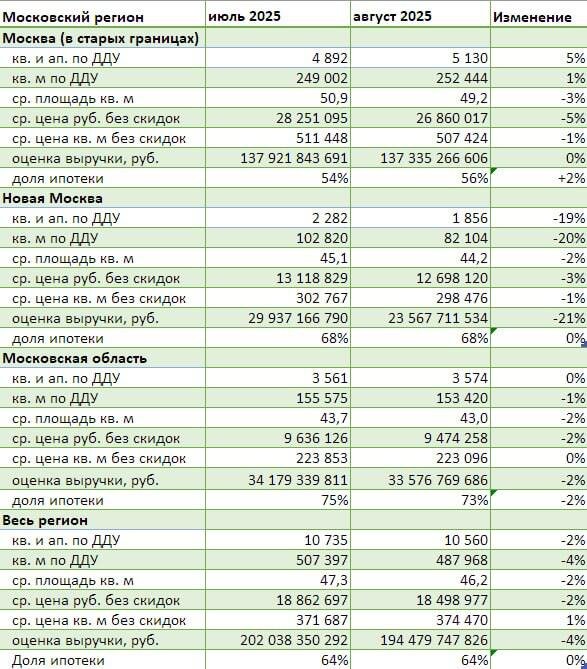 Статистика продаж август 2025. Какие сигналы дают цифры? 💙В августе по сравнению с июлем в границах старой Москвы продажи выросли на 5%. Зарегистрировано 5 130 квартир по ДДУ и уступкам. Сейчас уже очевидно, что дно продаж было в мае на отметке 3776 квартир. В начале июня Цб первый раз снизил ключевую ставку. Снижение ставки пока не позволяет бизнесам чувствовать себя сильно лучше и покупать людям вторичку по стандартной ипотеке. Но сейчас очевиден переход на более краткосрочные депозиты у населения. В августе депозиты на 3 месяца имеют самую большую долю в 32,4%, что наводит на мысли о том, что часть людей планирует крупные покупки как раз к Новому году в декабре. 💙Доля ипотеки выросла до 56%, и это самый высокий показатель с начала года. В январе он составлял 39%. Здесь очевидно, что покупатели оптимистичнее смотрят на снижении ключевой ставки в 2026 и 2027 году и заходят в различные траншевые и ипотеки с субсидированными ставками на 1-2 года намного активнее. Средняя стоимо