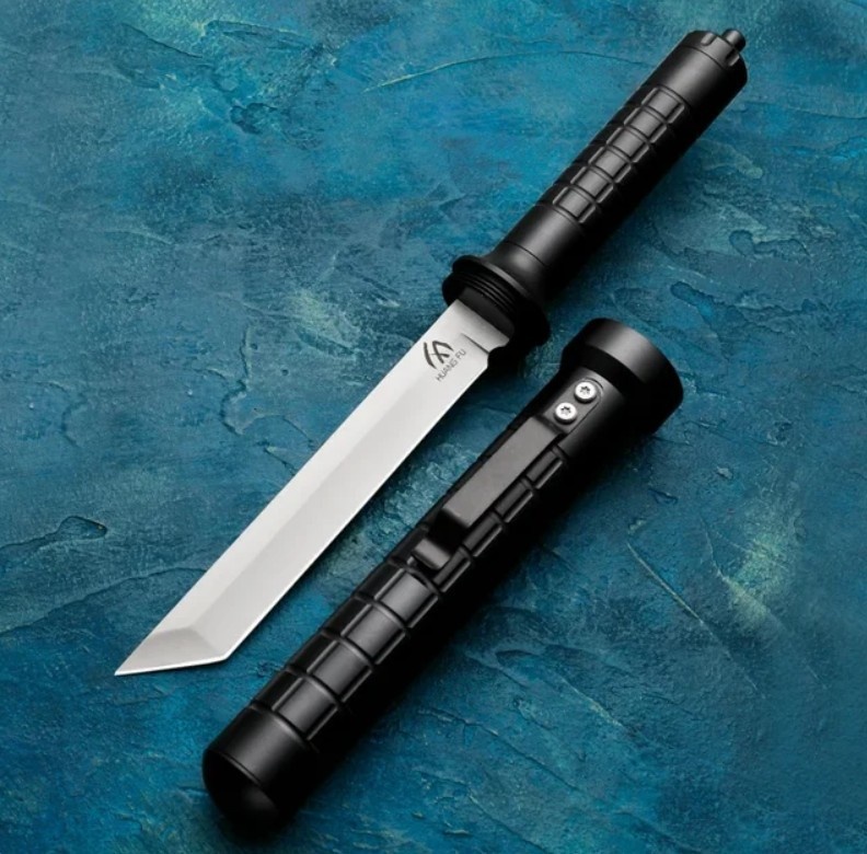 Первое, что обращает на себя внимание при рассмотрении этого предмета, это то, что он представляет собой, хотя и заметно уменьшенную, но самую обычную дубинку – вполне подходящее для самообороны орудие. Но, как оказывается, это только «вершина айсберга». Та часть биты, которая не является рукояткой, представляет собой жëсткие ножны, внутри которых находится клинок ножа выполненного в стиле «танто». Нож-фуллтанг и ножны представляют собой одно целое при помощи резьбового соединения. И ещë немного о приятном – на торце рукоятки находится стеклобой, делающий этот полезный комплект ещë полезнее. Подробнее об этом средстве смотрите ЗДЕСЬ Подписывайтесь на наш канал в Telegram, чтобы получать больше материалов о необычном вооружении и военных технологиях. Kuba Kickz представляет собой довольно интересное устройство для самообороны, которое можно установить прямо на вашу обувь. Это единственное в своём роде нелетальное средство защиты, которое легко крепится в верхней части ботинка — между