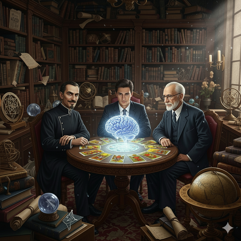 Что такое магия? Это суеверие из тёмного прошлого или мощный инструмент для работы с подсознанием? Наша цивилизация, зацикленная на логике и технологиях, всё равно не может избавиться от тяги к необъяснимому. Мы собрали в нашем виртуальном кругу трёх великих мыслителей, чтобы разобраться в этом вечном споре: легендарного оккультиста Алистера Кроули, мудрого отца аналитической психологии Карла Юнга и современного нейропсихолога доктора Алекса Риверу, который будет представлять точку зрения закрытой и "профдеформированной" науки. Модератор: Господа, начнём с главного. Что такое магия? Кроули: (С усмешкой, откинувшись в кресле, его глаза горят острым, пронзительным светом). Магия — это наука и искусство вызывать изменения в соответствии с волей. Это не вытаскивание кролика из шляпы, а способность управлять реальностью. Ритуалы, символы, талисманы — всё это лишь инструменты, которые помогают сосредоточить волю. Если ты хочешь добиться цели, ты не молишься, а действуешь — и магия помогает т