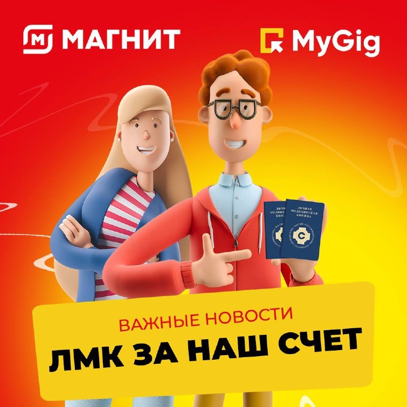 ❗️Медкнижка — это важно. Не упустите нашу акцию с компенсацией ЛМК при выполнении смен в Магните! Напоминаем: мы возмещаем расходы на медицинскую книжку (ЛМК) — до 3000 ₽ 💰 ✅ Кто может участвовать? Все регионы и все профессии 📌 Для действующих исполнителей: - Новая ЛМК / продление текущей - Компенсация до 3000 ₽ - Необходимо предоставить чек и скан - Выплата при условии 3-х отработанных смен в Магните в августе 📌 Для новых исполнителей: - Ранее не подрабатывали в MyGig - Новая ЛМК / продление текущей - Компенсация до 3000 ₽ - Необходимо предоставить чек и скан - Выплата после 5-й отработанной смены в Магните в период действия акции ‼️ Важно: - Медкнижка должна быть не старше 2 недель на момент обращения - Выплата осуществляется после проверки условий — в течение 3 рабочих дней - Если расходы на ЛМК превышают 3000 ₽, компенсация выплачивается в пределах лимита 💖 Как получить компенсацию? Обратитесь в чат поддержки через мобильное приложение: Профиль → верхний угол → 🎧 чат подд