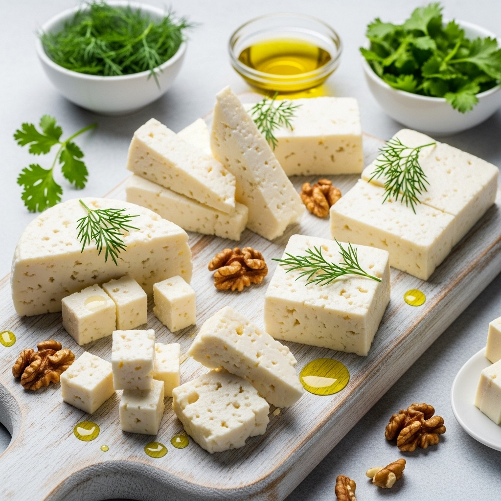 - Адыгейский сыр - свежий, мягкий, слегка солёный. Его почти не прессуют, он влажный и нежный. Идеален для салатов, тостов, запекания.