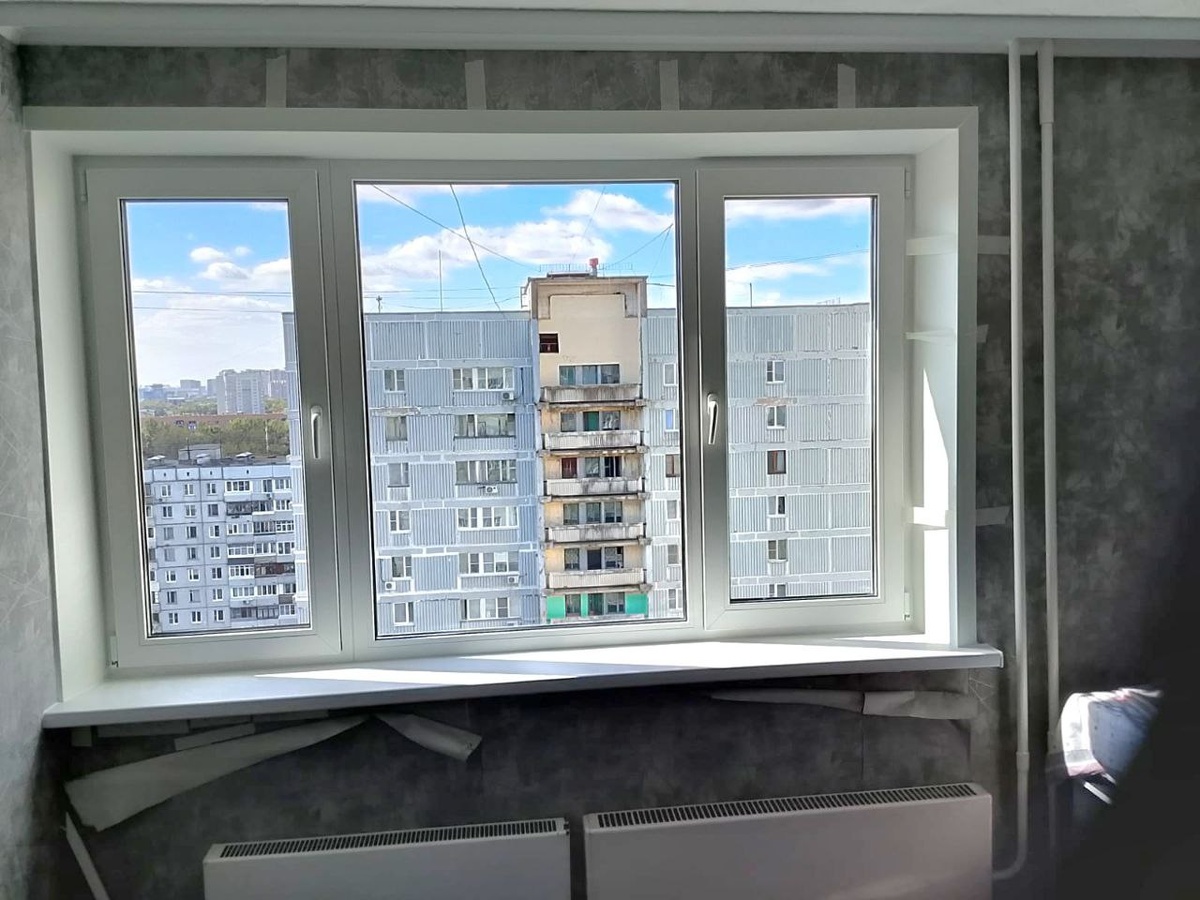 Установка двух окон в конструкцию типа "паровоз" 🚂 😁, между окон стены нет и соединение производится через доборные профиля. Внутри делается для ровности фальш откос.
