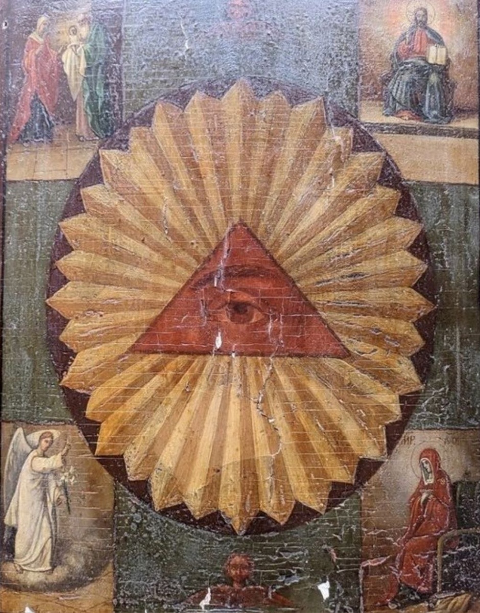 Вера во Христа – одно из средств видеть дальше, чем человеческий глаз. Через веру можно созерцать мир Божий. Известно, что глаз ограничен, поэтому учёные придумали линзы, рентгеновские лучи, электронные микроскопы, компьютерную томографию. При помощи аппаратуры обозревается реальность, которая недостижима глазом. Примеры Священного Писания учат не всегда доверять собственному уму и принимать мысли Божественные, которые, независимо от внешних обстоятельств, не поддаются земным привязанностям. Архимандрит Елеазар (Иванов) #АрхимандритЕлеазарИванов «Всевидящее око». Русская икона 18-19 века.