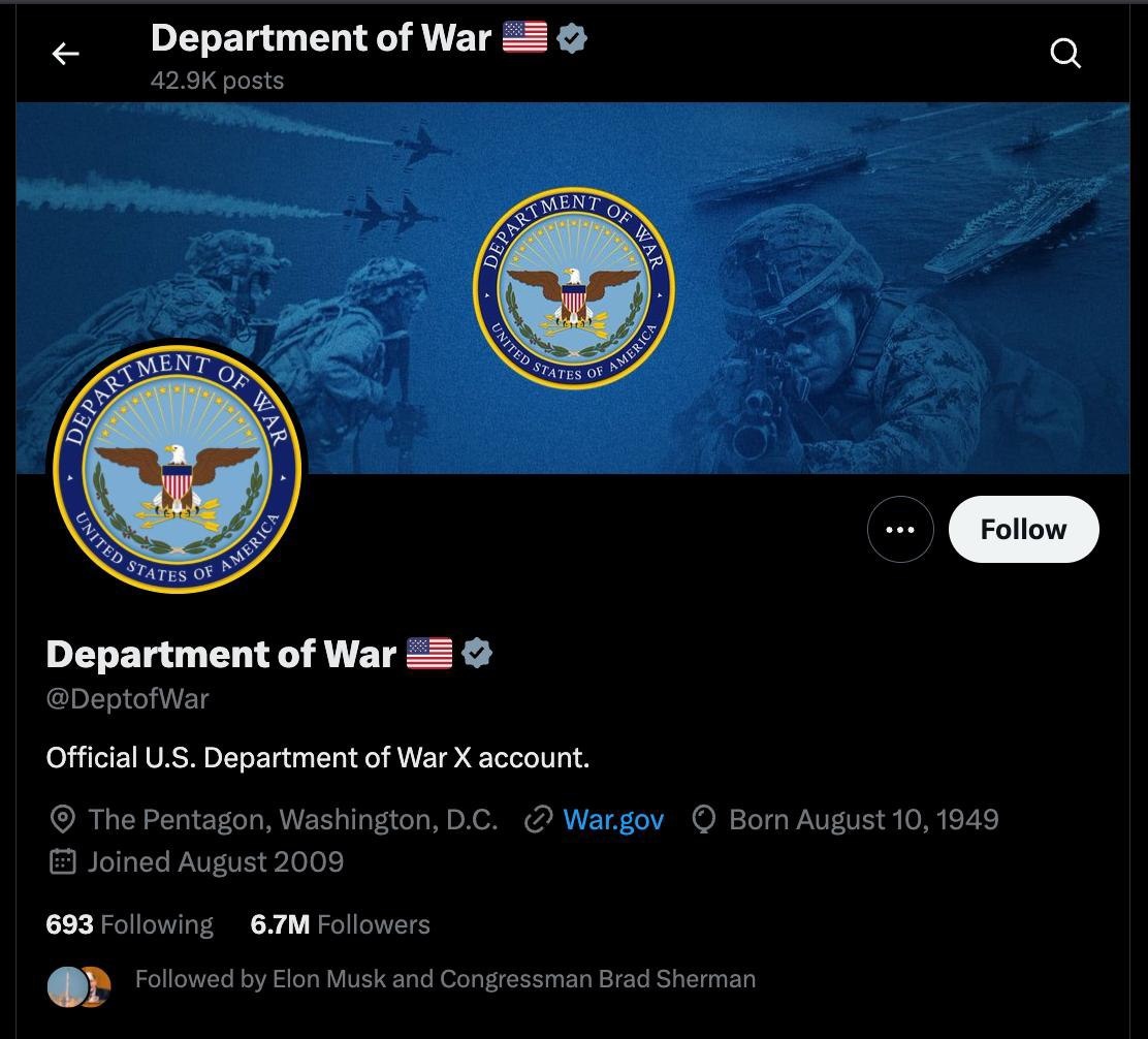 5 сентября Дональд Трамп подписал указ о переименовании департамента обороны (Пентагона) в прежнее название «Департамент войны