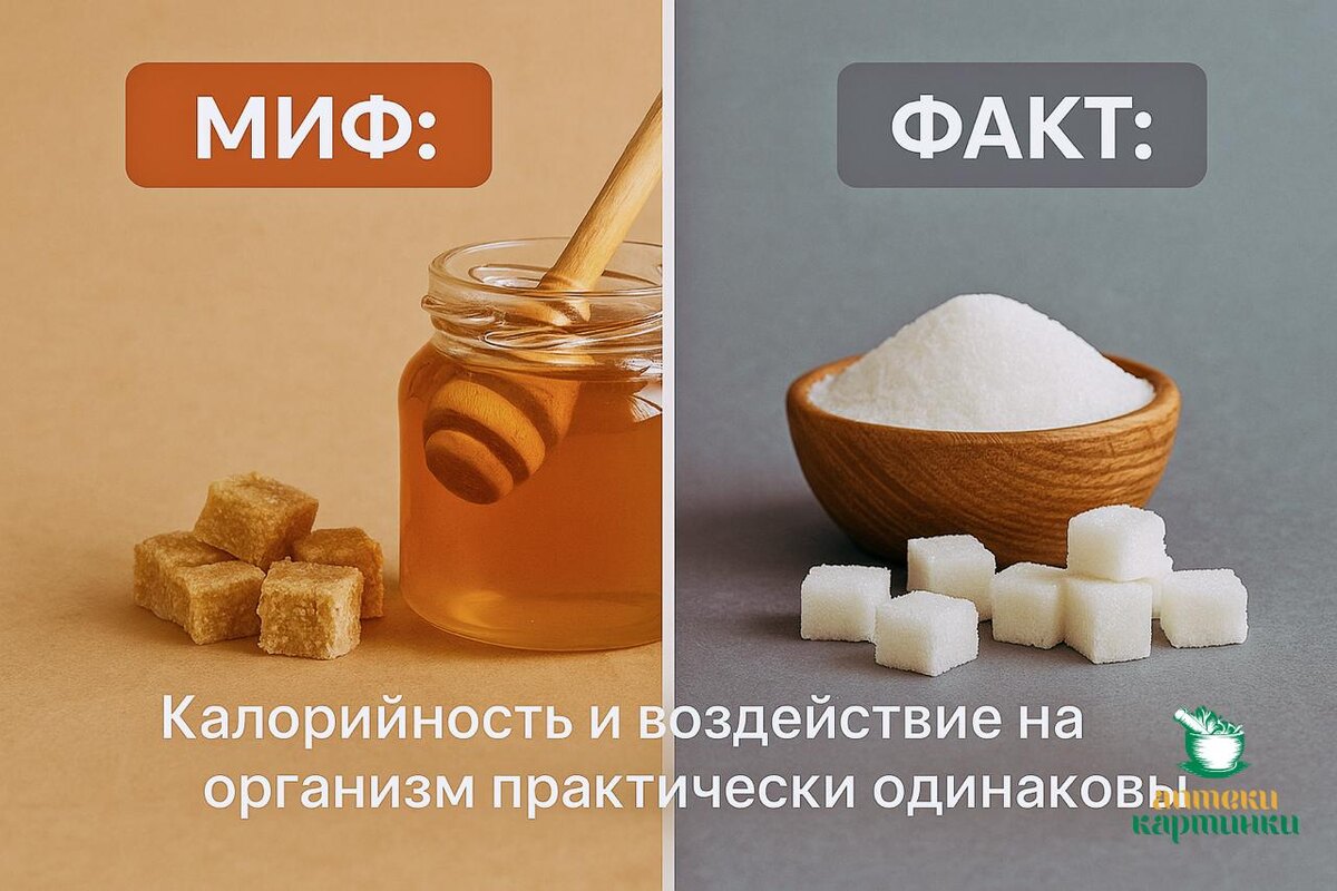 🍯 Миф или факт? Разбираем! 💬МИФ: Натуральный сахар (мёд, тростниковый, кокосовый) полезнее, чем обычный белый рафинированный. 🔠ФАКТ: Увы, но для организма это почти одно и то же 😅 ➖ Все виды сахара — простые углеводы, которые быстро повышают уровень глюкозы в крови. ➖ Калорийность почти одинаковая: около 4 ккал на 1 г ➖ Разницы в гликемической нагрузке — минимум. 🍯 Мёд может содержать немного витаминов и антиоксидантов, но их настолько мало, что ради них есть ложками мёд точно не стоит. Так что не обманывайте себя тростниковым “фитнес-сахаром” или “натуральным сиропом агавы” — умеренность важнее вида 🍩 🙌 Хотите сладкого? Можно! Главное — немного и не на ночь #МифыОЗОЖ #Питание #ЗОЖ #АптекиКартинки #ФактыОМедицине #Сахар #ИскусствоЗдоровья