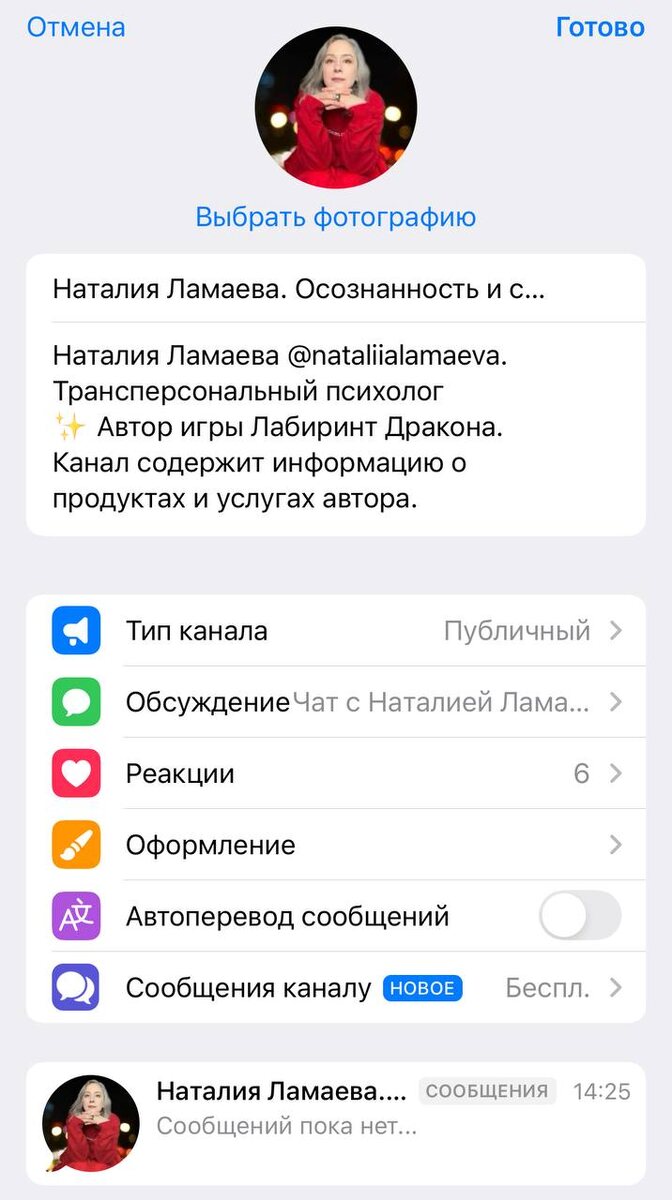 Включила опцию - написать сообщение каналу. Можно мне написать, можно задать вопрос. Я с удовольствием отвечу.