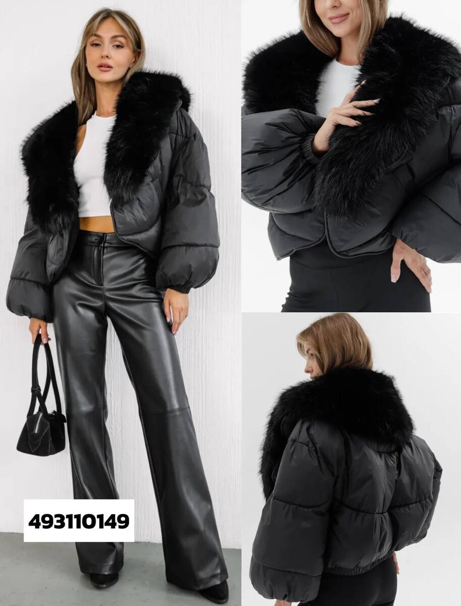 Арт. 493110149 — укороченный пуховик с драматичным меховым воротом