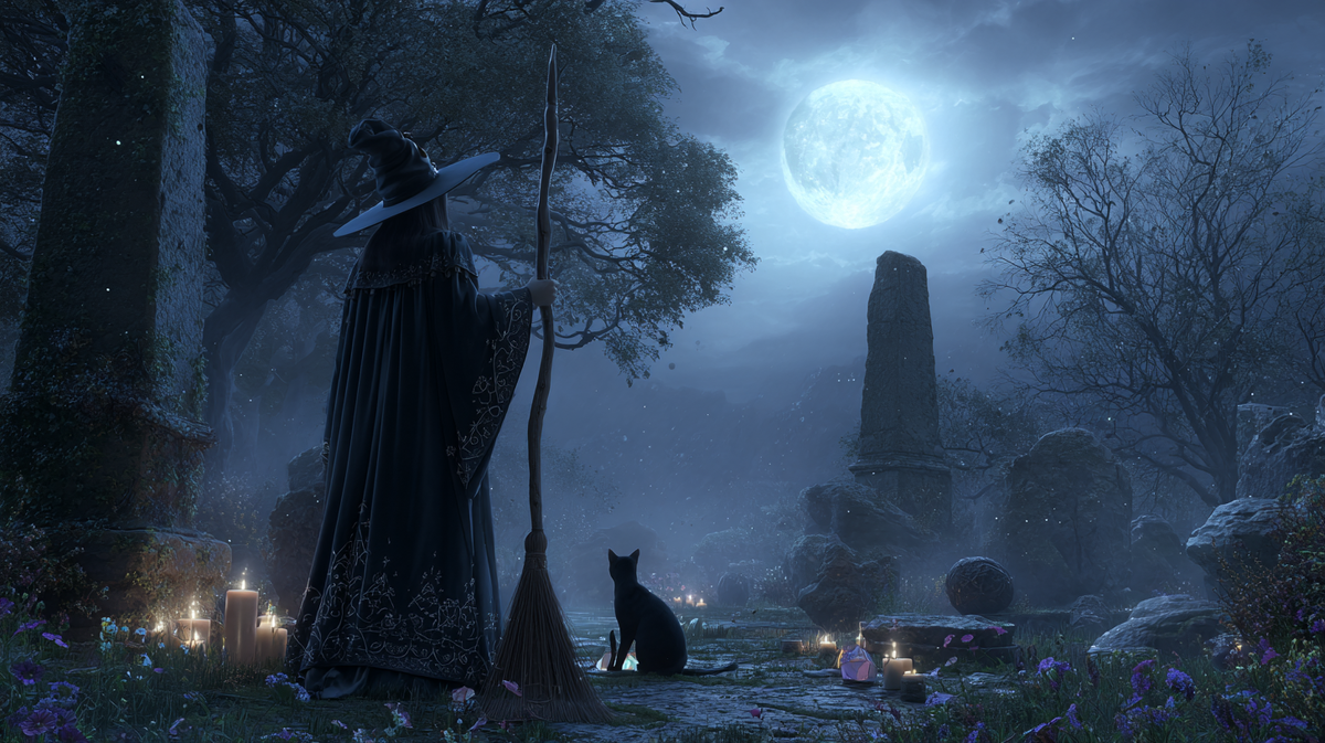 У многих ведьм есть лунная традиция: посвящать метлу под полной Луной, поднимая её к свету, а затем использовать в «лунной езде» — символически. Можно оседлать рукоять, закрыть глаза, представить дорогу над полями, услышать шелест верхушек деревьев — и позволить себе отпустить то, что тянет вниз, или позвать то, что должно войти. Так рождается ощущение полёта духа — спокойное и сильное.