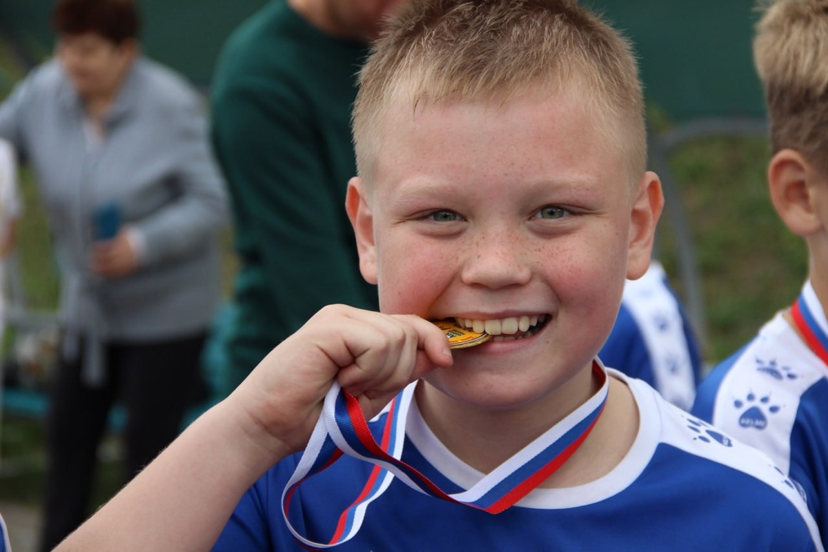 В Курске прошел турнир по футболу Юные куряне, только вперед! В областном центре состоялись финальные игры турнира, приуроченного ко Дню окончания Второй мировой войны. Победу одержала победу одна из команд воспитанников спортивной школы №6. Мероприятие состоялось на футбольном поле школы №58. Состязались футболисты 2014-2015 годов. Родные и близкие спортсменов стали главными болельщиками. «Медаль – настоящая, не шоколадная!» - сказал, радостно улыбаясь, юный футболист.