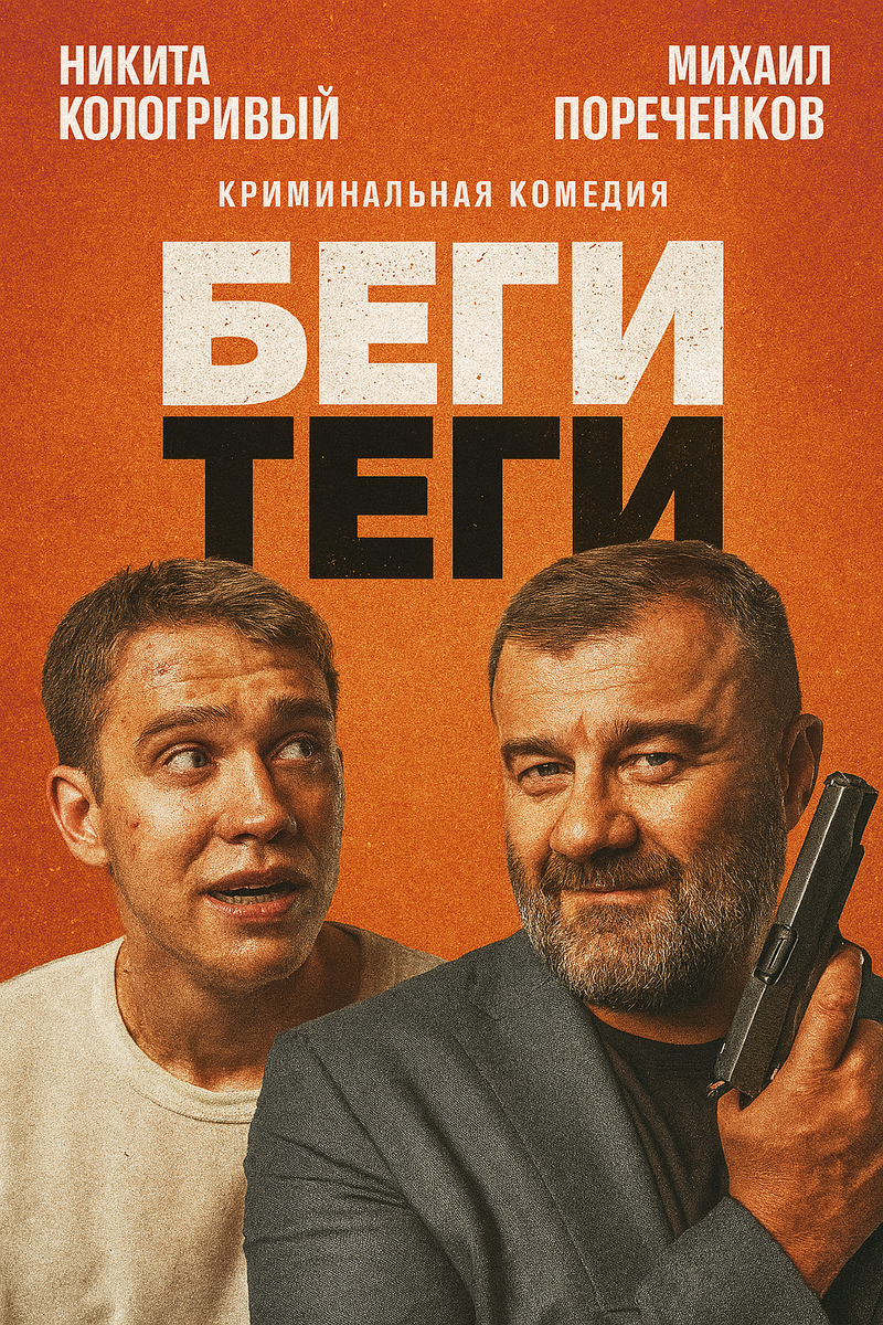 «Беги» — новая российская криминальная комедия режиссёра и сценариста Романа Артемьева, премьера которой в кинотеатрах запланирована на 14 августа 2025 года. Фильм объединяет в главных ролях двух ярких актёров — Никиту Кологривого и Михаила Пореченкова, а также обещает зрителям смесь остросюжетного экшена и фирменного отечественного юмора2. Главный герой — Саша (Никита Кологривый), вор-домушник, который привык действовать по накатанной схеме. Но в один из «рабочих» дней он совершает роковую ошибку: залезает не в тот дом и становится свидетелем убийства. Хозяин квартиры — Чернов (Михаил Пореченков), хладнокровный киллер, у которого и без того хватает забот. С этого момента начинается безумная игра в кошки-мышки: Фильм балансирует между криминальным триллером и комедией положений. Здесь есть: Помимо Кологривого и Пореченкова, в фильме снимаются: