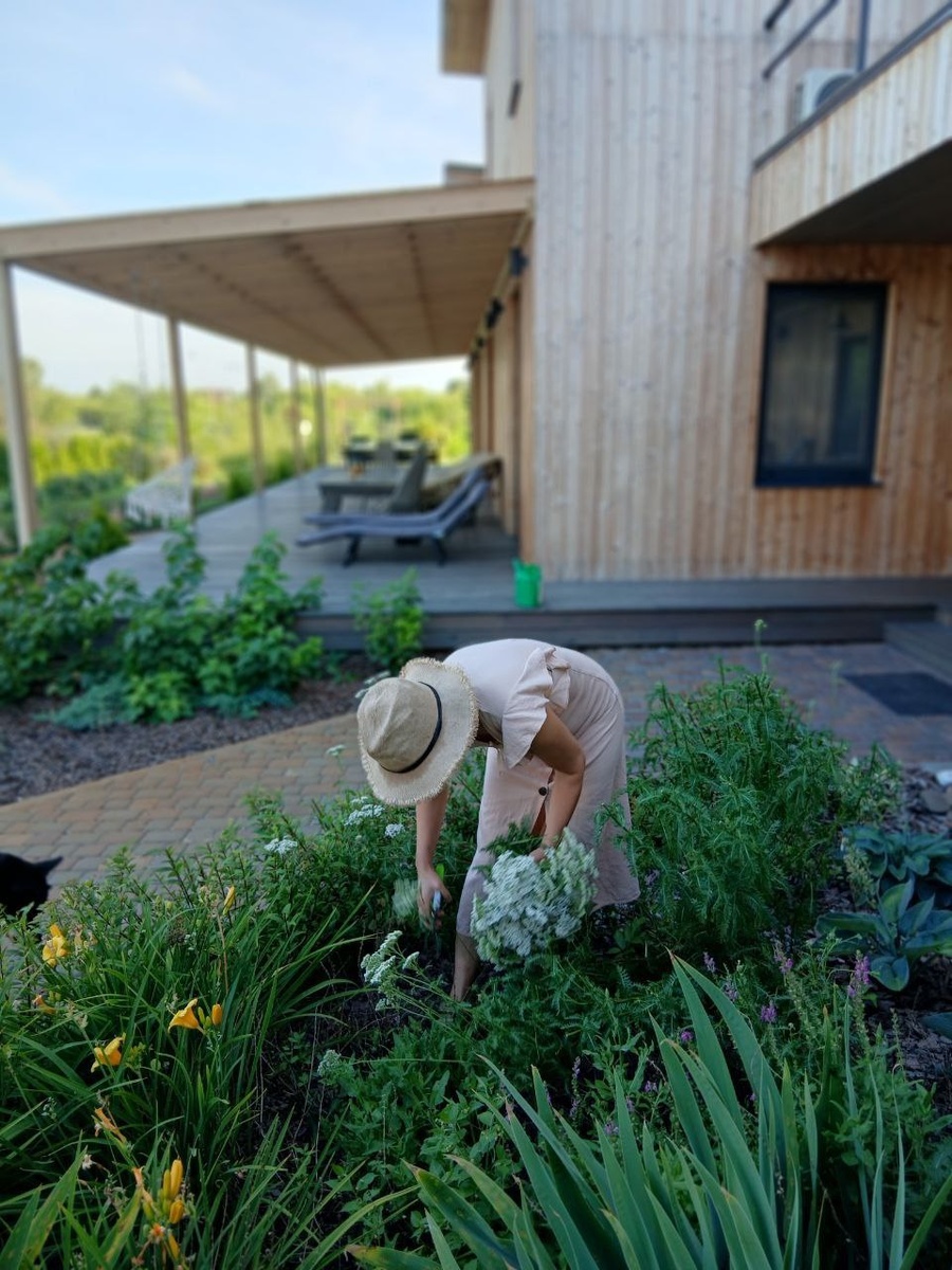 Потом был обед — тёплый, настоящий. Мы всегда подаём еду, выращенную у нас, и это меняет ощущение от вкуса. Овощи, которые росли рядом с домом, несут в себе ту же вибрацию, что и земля, на которой мы живём. Это совсем другое питание. Не по калориям, а по энергии.