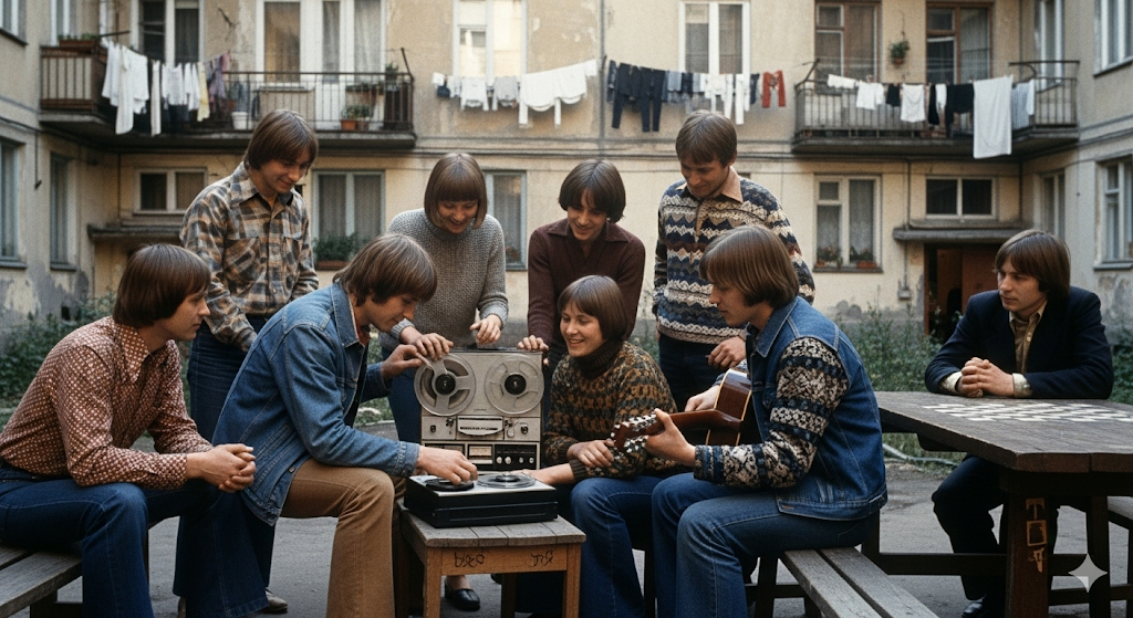Музыкальная жизнь в то время была многослойной. Существовал официальный мир, где правила задавали государственное телевидение, радио и фирма «Мелодия». С другой стороны, была неофициальная музыка, которая жила вдали от софитов — на кухнях, в квартирах и, конечно, во дворах. Здесь царили авторская песня, «магнитиздат» и простые мелодии, которые передавались из уст в уста под «трехаккордное бренчание гитар». Понятие «дворовая песня» тогда было очень широким: это могла быть любая мелодия, которая благодаря своей популярности проникала в повседневную жизнь, звучала из окон и из динамиков катушечных магнитофонов. Эти песни стали частью коллективной памяти, где не было ни богатых, ни бедных, а жизнь была полна искренних эмоций, друзей и первых влюблённостей.