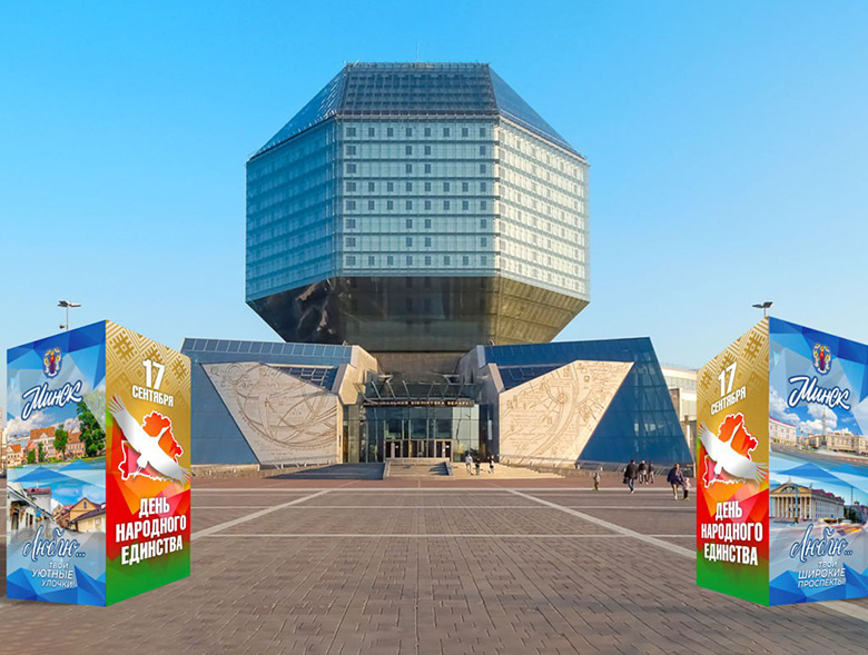 Цвета государственной символики, золотой фон и аист, распахнувший крылья над Беларусью — как украсят столицу ко Дню народного единства, корреспонденту агентства «Минск-Новости» рассказали на предприятии «Минскреклама». — В этом году решили не отходить от золотой классики и выбрали в качестве основы графики цвета, тождественные цветам государственной символики — оттенки красного и зеленого, — рассказала начальник отдела дизайна «Минскрекламы» Татьяна Бугоркова. — Красный в нашей культуре — не просто цвет, а символ чувств, памяти и силы. Он есть в узорах вышивок, оживает в полотнах народного творчества, звучит в песнях и легендах. Зеленый — дыхание Беларуси, цвет природы — щедрой, спокойной, мудрой. Это цвет надежды, роста и обновления. Дополняют графическое решение стилизованный золотой фон с элементами национального орнамента как символ солнца, прошедший сквозь века. Завершает праздничную графику парящий над контуром страны аист как символ мира, согласия и единства. Его крылья — мост м