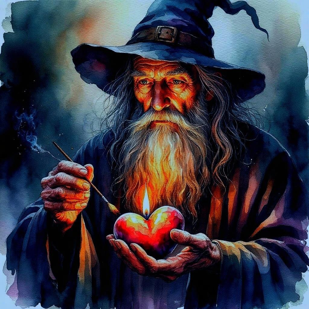 Когда-то раньше нас авторов писателей и поэтов называли инженерами человеческих душ. В те времена слово "инженер" было крайне популярно. Настолько популярно, что в СССР инженерами стали называть всех, кто имел хоть какое-то техническое образование: чертёжников, архивистов, регистраторов и даже начальников. Забавно, но слово ИТР стало у всех ассоциироваться именно с начальниками среднего звена, хотя по смыслу означало совсем иное. Естественно, что "инженерами человеческих душ" сейчас быть никто не хочет, да и вообще инженерами. Слово полностью дискредитировали. Но ведь нужно же себя с кем-то ассоциировать. А тут мне встретилась красивая картинка в Шедевруме с магом в окружении свечей и вспомнились строки из песни 90-х "Время выбрало нас зажигать в душах свечи". И мне захотелось "зажечь". А результат посмотрите.