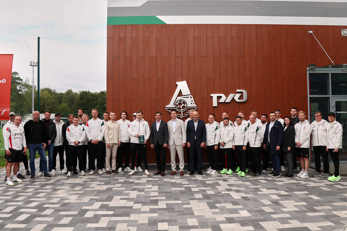 В рамках образовательного интенсива «Путь тренера» на встречу с тренерским штабом основной команды «Локо» приехали наставники молодежки, команд ЮФЛ, включая тренеров по физподготовке, а также старших возрастов отделения «Перово». Заместитель генерального директора по развитию молодежного футбола ФК «Локомотив» Борис Ротенберг передал экземпляр Единой методологии подготовки молодых футболистов главному тренеру основного состава Михаилу Галактионову. Борис Ротенберг, заместитель генерального директора по развитию молодежного футбола ФК «Локомотив»: — Мы благодарим руководство клуба и тренерский штаб основной команды за то, что разрешили посмотреть тренировочный процесс. Такие встречи уже стали приятной традицией. Наши тренеры в восторге! «Локомотив» – это семья! Вся Академия работает для того, чтобы, в том числе, основной состав получил хороших и высококвалифицированных футболистов. Задача Департамента – воспитание не только игроков, но и тренеров. И мы надеемся, что Локомотив – дает пут