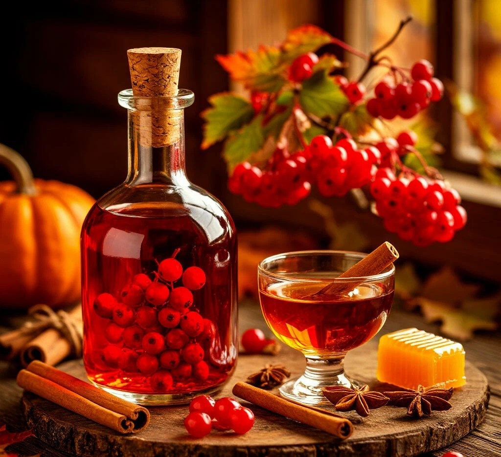 Осень в разгаре, а это значит, что пора доставать теплые пледы, любимые кружки и... готовить натуральные защитники для нашего здоровья! Сегодня хочу поделиться с вами рецептом, который в нашей семье передается из поколения в поколение, — целебной настойкой калины на коньяке с медом. Это не просто алкогольный напиток, а настоящая скорая помощь в красивой бутылочке. Помню, как моя бабушка всегда доставала эту рубиновую настойку, когда кто-то в семье жаловался на давление или начинал кашлять. Всего одна рюмочка — и самочувствие улучшается на глазах! Теперь и я следую этой традиции и каждую осень, когда поспевает калина, обязательно готовит эту волшебную настойку. И поверьте, это так же просто, как заварить чай! Главное — найти качественные ягоды и хороший коньяк (не обязательно дорогой). Почему эта настойка должна быть в вашей аптечке? · Помогает при повышенном давлении. Калина известна своим свойством мягко снижать давление, а в сочетании с коньяком этот эффект становится еще более
