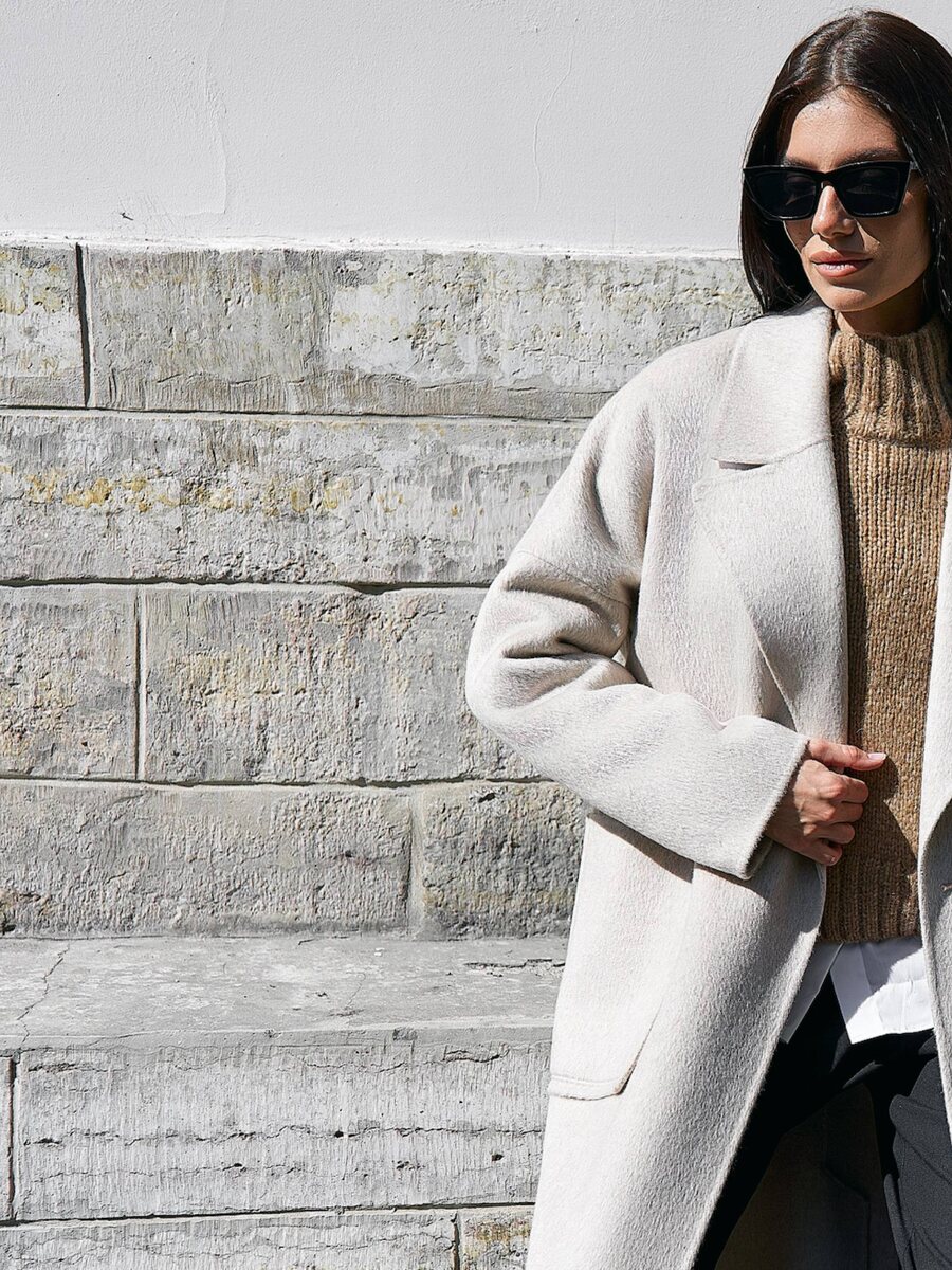 Образ недели Идеальная формула осени: объёмное пальто цвета топлёного молока, тёплый свитер карамельного оттенка и белая рубашка, выглядывающая из-под низа, создают многослойность без излишней тяжести. Чёрные укороченные брюки и лоферы с леопардовым принтом добавляют акценты, а тёмные очки завершают образ. Этот образ – та самая городская осень – сдержанная, уютная и уверенная. Все товары доступны онлайн на сайте mcbuy.ru и в наших фирменных бутиках Москвы и Санкт-Петербурга.