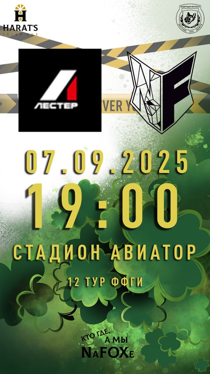 12 ТУР ФФГИ! Встречаемся с командой "Шелехов"! Ожидается очень интересный и насыщенный матч, ведь до конца чемпионата осталось 2 тура! Надеемся на Вашу поддержку в завтрашней игре и ждём всех и каждого на Авиаторе в 19:00! Идеальное поле и идеальное время, чтобы провести его со своей любимой командой!!! 📍 Авиатор 07.09.2025 в 19:00! 🚨🚨🚨 КТО ГДЕ, А МЫ NAFOXE / HARATS WHEREVER YOU GO