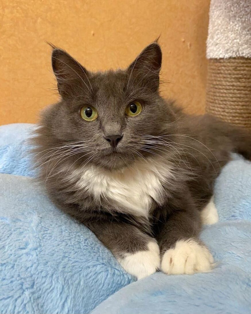Это Флаффи. Ей всего около годика, но она уже успела и побывать на улице (куда ее, скорее всего, выбросили), и пожить на территории отеля, и в Зооцентре погостить. А сейчас Флаффи живет на передержке в ожидании своей семьи. Флаффи здорова, стерилизована, обработана. По характеру ласковая, с удовольствием гладится. Прекрасно ладит с котиками и кошечками. Возможно, Флаффи — метис нибелунга, а, может быть, она просто очень красивая. В любом случае, Флаффи прекрасна! И эта красота ищет самые любящие и ответственные ручки. Москва 89152551536 (вотсап/тг)