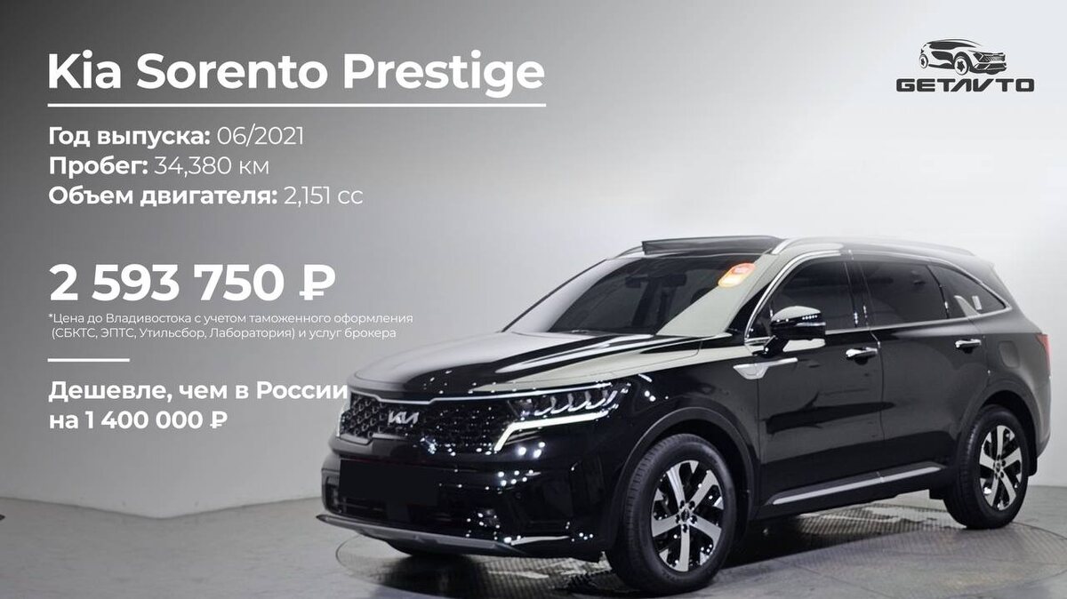 Какое авто купить из Южной Кореи? Продолжаем нашу еженедельную рубрику подборок💥 А еще больше подборок авто в нашем 2-ом канале, подписывайтесь — https://t.me/+B5n42yUkqUowY2Zi Kia Sorento Prestige Год выпуска: 06/2021 Пробег: 34,380 км Объём двигателя: 2,151 cc 🟰 Стоимость под ключ до Владивостока 2 593 750 ₽ 🔗 Ссылка на автомобиль Hyundai Staria Modern Год выпуска: 09/2021 Пробег: 67,996 км Объём двигателя: 2,199 cc 🟰 Стоимость под ключ до Владивостока: 3 033 621 ₽ 🔗 Ссылка на автомобиль Kia Mohave Masters Год выпуска: 09/2021 Пробег: 54,875 км Объём двигателя: 2,959 cc 🟰 Стоимость под ключ до Владивостока: 4 046 704 ₽ 🔗 Ссылка на автомобиль Kia Carnival Год выпуска: 08/2022 Пробег: 44,907 км Объём двигателя: 2,151 cc 🟰 Стоимость под ключ до Владивостока 3 005 194 ₽ 🔗 Ссылка на автомобиль Kia Sportage Prestige Год выпуска: 06/2022 Пробег: 35,511 км Объём двигателя: 1,598 cc 🟰 Стоимость под ключ до Владивостока 2 460 978 ₽ 🔗 Ссылка на автомобиль Hyund