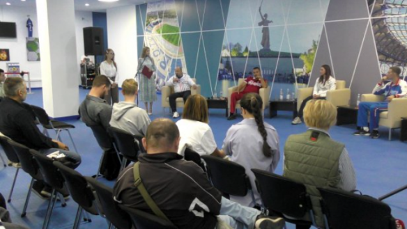 В рамках молодежного фестиваля #ТриЧетыре состоялась встреча студентов с прославленными волгоградскими спортсменами. В микст-зоне «Волгоград Арены»олимпийский чемпион по тяжелой атлетике Алексей Петров, призер Сурдлимпийских игр Алексей Савостин, многократный чемпион мира по тхэквондо Иван Селезнев и медалистка юниорских первенств Серафима Фокина ответили на вопросы молодежи.